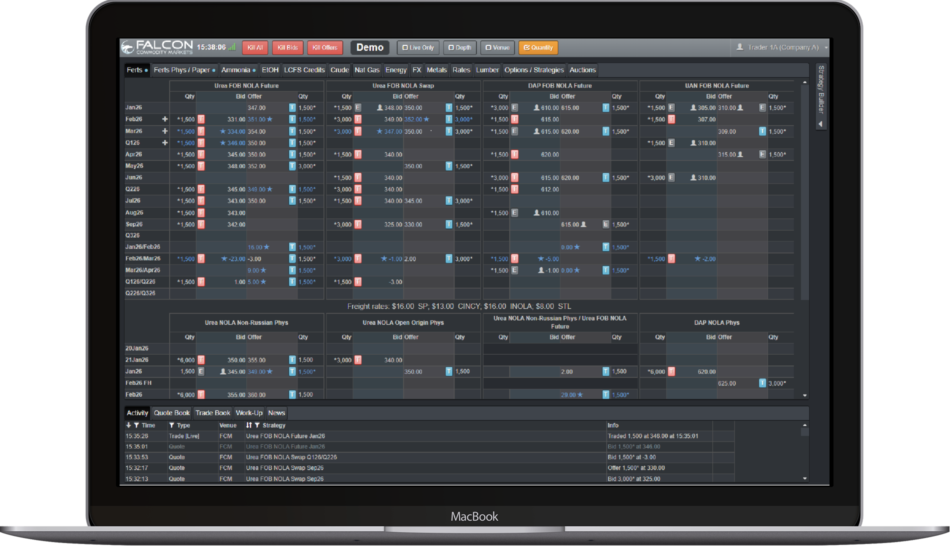 Founded in 2017, Falcon Commodity Markets is a leading global brokerage specialising in Fertilizer products. We offer direct P2P trading on our digital market place (Falcon Platform) as well as traditional voice broking services through our highly experienced international broking teams.